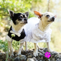 Pour les garçons, on fonce sur le smoking pour chien ou sur le noeud papillon pour chien de la boutique.