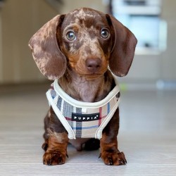 Le harnais pour chien Kensington Puppia est magnifique avec son tissu écossais et son emblème doré digne d’un petit roi à quatre pattes.