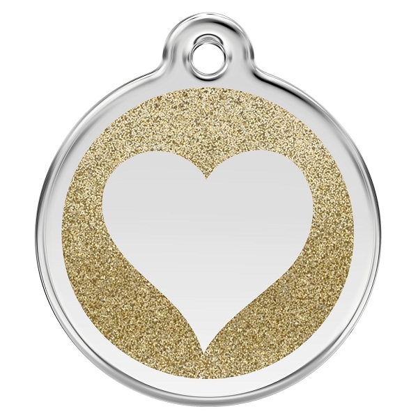 Médaille pour chien à graver en forme de cœur pailleté or.