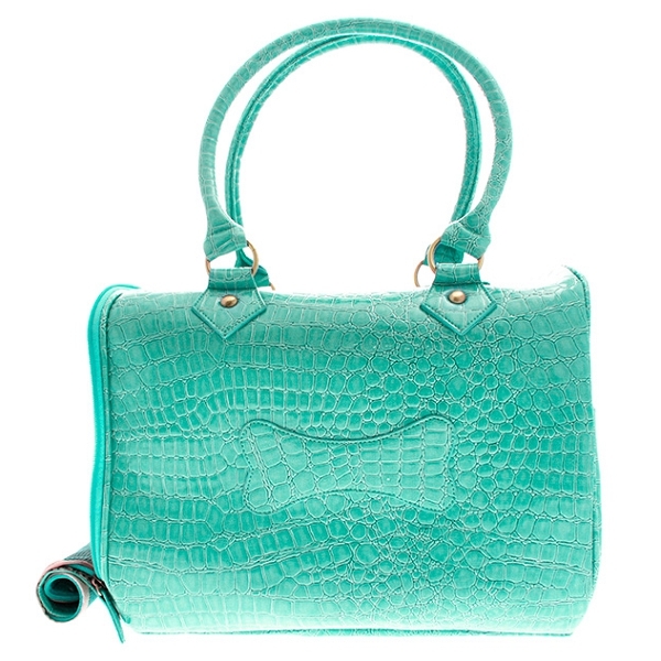 Pratique et élégant, ce sac de transport pour chien et chat, coloris bleu turquoise, est muni d'une face ventilation, d'une petite poche pour y ranger des friandises ou le carnet de santé, et d'un tapis pour un nettoyage facile.